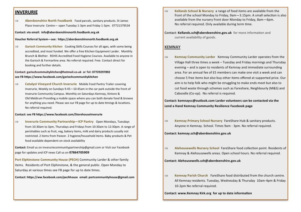 We have created a brochure of places within the local area that can provide support if you are struggling with food.