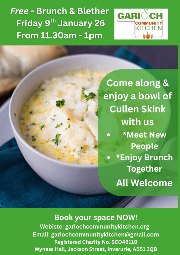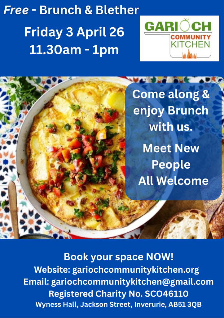 Please click the link below to request a space on the next Brunch & Blether, please note we can accommodate upto 20 for Brunch and will be served at 11.30am – 1pm.